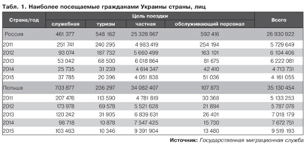 Росія разом з Польщею залишається країною, яку найчастіше відвідують наші співвітчизники. Там працює до 40% всіх трудових мігрантів з України, причому кожен п’ятий – без будь-яких правових підстав (“Міграційний профіль України 2011-2015”). Так, конфлікт на Сході відбився на лояльності українців до агресивної сусідки, з 2014 року кількість наших співгромадян, які відвідують РФ, скорочується. У 2013-му понад 6 млн українців відвідали РФ, в 2015-му – вже трохи більше 4 млн. Але все одно це друга за відвідуваністю українцями країна.