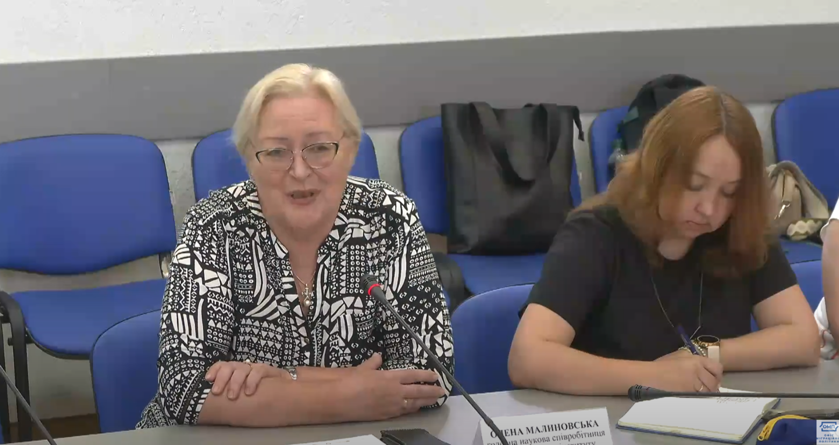 Олена Малиновська – головний науковий співробітник Національного інституту стратегічних досліджень — Я буду лаконічною, бо у представленій доповіді вже були