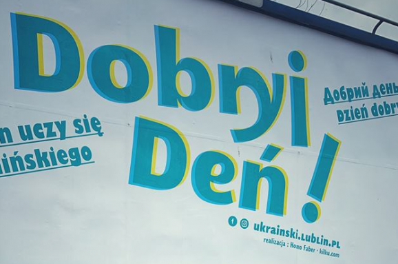 На початку березня на вулицях Любліна з’явилися декілька біл-бордів з кількома українськими словами. Таким чином, місцеве товариство «Гомо Фабер», яке